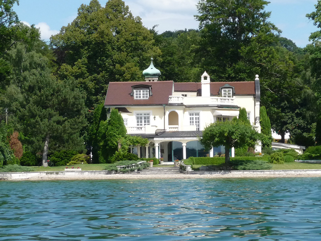 „Ambach war damals, als meine Eltern 1878 diesen Besitz erwarben, ein einfaches, sich am Ufer hinziehendes Fischerdorf, in dem von Ammerland kommend, das erste Bauernhaus der „Schäfflerbauer“ war. Diesen Schäfflerbauern kaufte Papa, aber erst als es ihm gelungen war, die, durch das Anwesen laufende Landstraße zu verlegen, so dass das Grundstück als Ganzes direkt am Seeufer lag. Die Straßen Verlegung war eine große Angelegenheit, denn es mussten zu ihrer Genehmigung 30 Bauern, die alle am Seestreifen beteiligt waren, weil sie ihre Fischernetze dort zum Trocknen und Flicken aufhängten, unter einen Hut gebracht werden. Es gelang mit Aufwand von viel Beredsamkeit, Schnäpsen und Cigarren, gelegentlich einer großen Versammlung in der Schäfflerbauernstube!