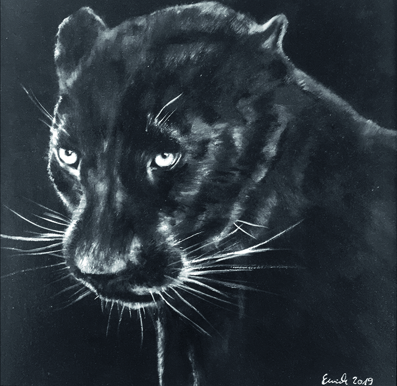Annette Emrich verwendet diese Technik sowohl in Schwarzweiß, wie in Farbe für ihre Tierporträts, für die sie auch Aufträge annimmt.