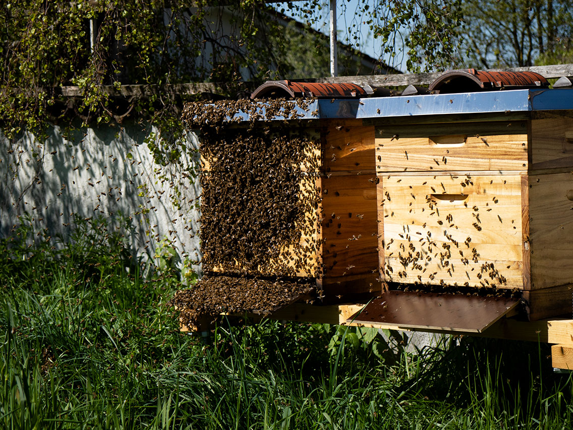 22 Bienenvölker hat Katrin Stefferl inzwischen. Die meisten leben direkt auf dem verwunschenen, durch eine Hecke von der Seeshaupter Straße abgeschirmten Grundstück. Zwischen knorrigen Obstbäumen blühen die Wiesen üppig. Ringelblumen sind genauso zu finden wie Lavendel, Thymian, Salbei und noch viel mehr. So insektenfreundlich wie möglich sollte der Garten sein. Für die Wildbienen hat die Imkerin sogar eigens Nisthilfen aus Schilf unter dem Dach ihres Hauses geschaffen.