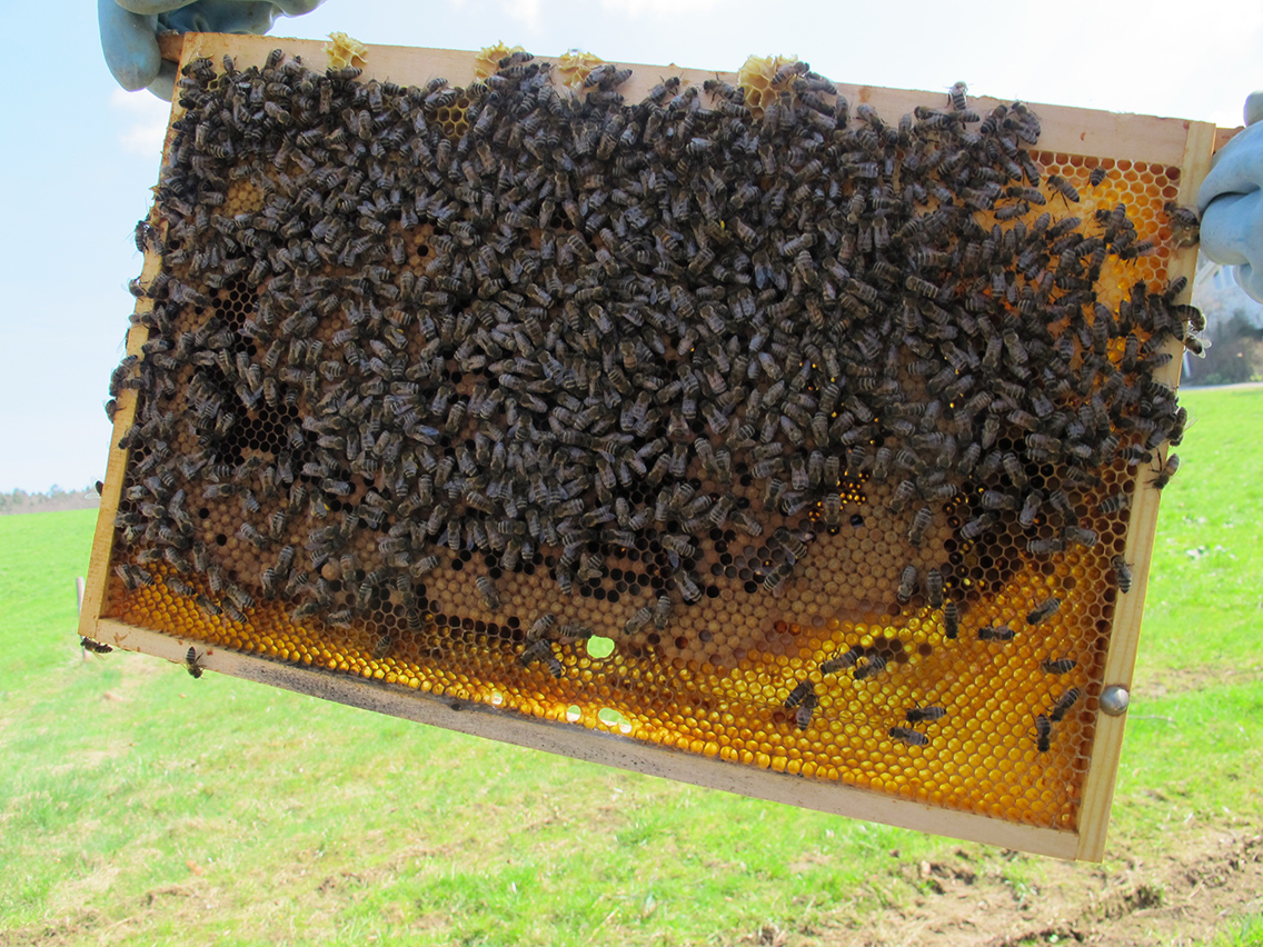 Um eine Bienenkönigin bildet sich jeweils ein Volk. Sie ist deutlich länger als Arbeiterinnen und Drohnen und im Unterschied zu diesen auch das einzig geschlechtsreife Weibchen im Stock. „Bis zu 40.000 Bienen kann ein gesundes Volk haben“, sagt Katrin Stefferl. Im Juli hat die Imkerin die meiste Arbeit mit ihren Tieren. Denn dann beginnt die Hochphase der Erntezeit. Sie sammelt die prall mit Honig gefüllten Waben aus den Stöcken ein. Im Keller ihres Hauses muss sie erst einmal die Wachsschicht entfernen, mit denen die Bienen die Waben verschlossen haben. Erst danach lassen sich diese schleudern, um schließlich reinen Honig zu gewinnen. Im Herbst und Winter sollten sich die Bienen ausruhen können. Dass etwa im vergangenen Jahr auf einem benachbarten Feld ein Landwirt Ackersenf ausgesät habe, sei eher schlecht, sagt Katrin Stefferl. Denn dadurch seien die Bienen, als die Pflanzen im November blühten, noch einmal ausgeflogen und hätten kostbare Energie verbraucht.