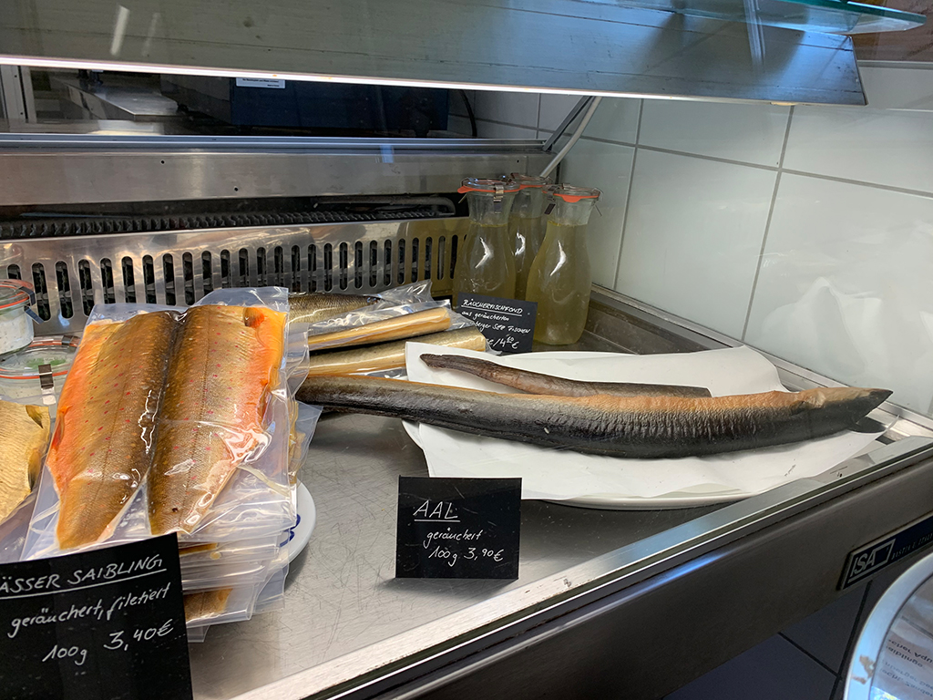 Der Fischverkauf wurde immer perfekter gestaltet: wurden früher hauptsächlich Frischfisch und geräucherte Fische im Ganzen verkauft, gibt es mittlerweile natürlich alles filetiert. Diverse Fischzubereitungen wie z.B. Fischsemmeln. Fischkuchen, Fischcreme etc. ergänzen das Sortiment. Sohn Martin experimentiert mit neuen Rezepturen z.B. Renken nach Sardellenart, Karpfenschinken kaltgeräuchert und wie Carpacchio hauchdünn aufgeschnitten, Fischfond und mehr.